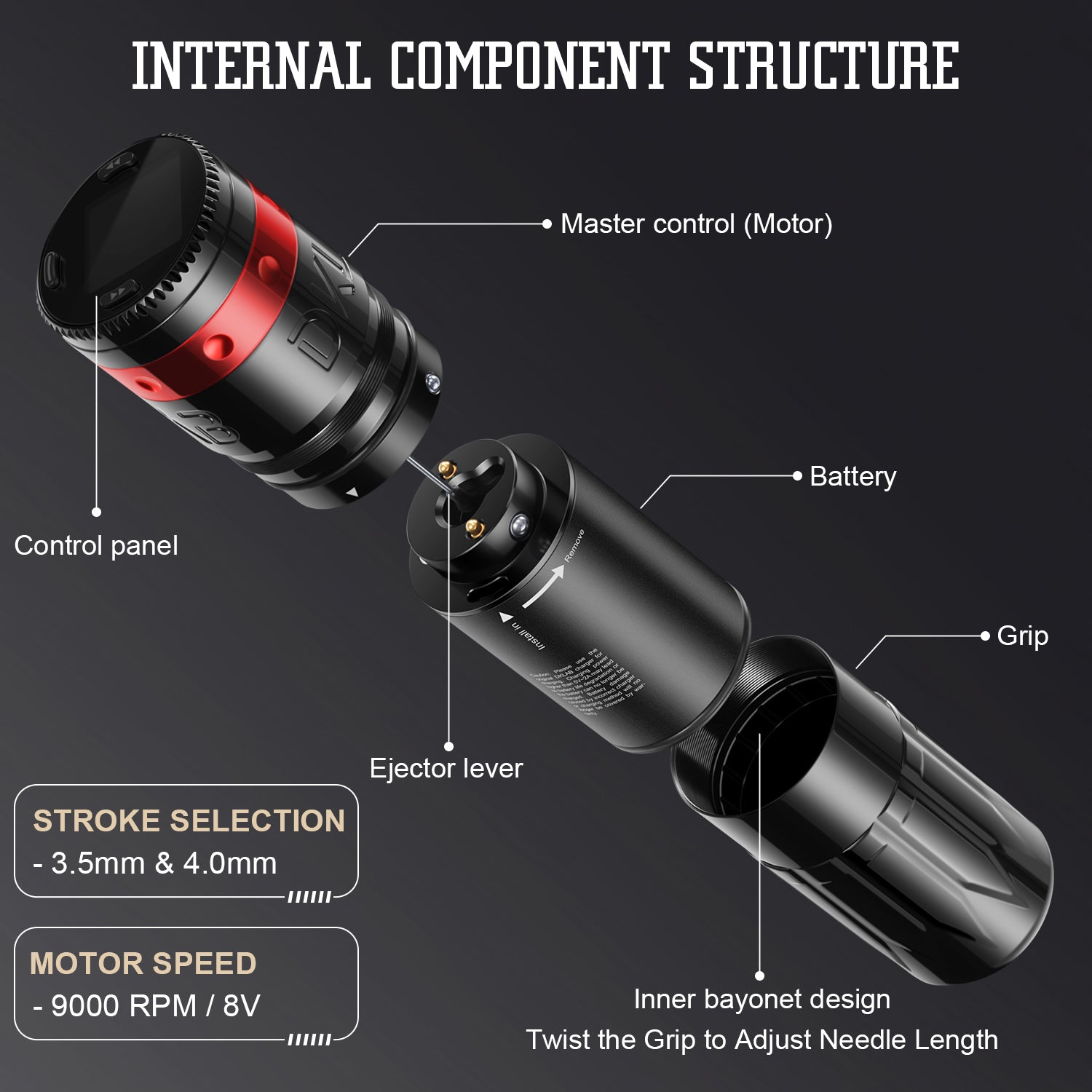 - High-Performance Coreless Motor: Powered by a Japanese coreless motor, this tattoo gun delivers smooth, consistent power, minimizing vibration and ensuring stable performance throughout the session.